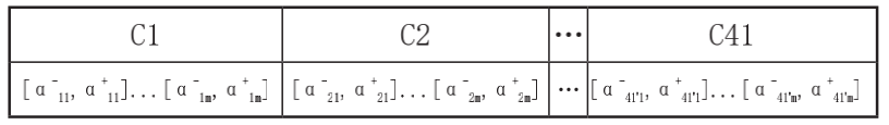 其中專家人數(shù)為m、α-ij、α+ij、分別代表第j位專家對第α+iji項指標評分的下限和上限,A1-A5、B1-B19、C1-C41分別代表各一級指標、二級指標和三級指標。