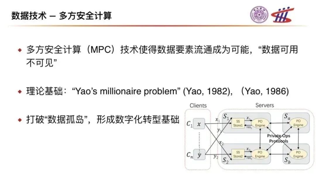 多方安全計(jì)算(MPC)技術(shù)使得數(shù)據(jù)要素流通成為可能,“數(shù)據(jù)可用不可見”,利用這項(xiàng)技術(shù),可以打破“數(shù)據(jù)孤島”,形成數(shù)字化轉(zhuǎn)型基礎(chǔ)。