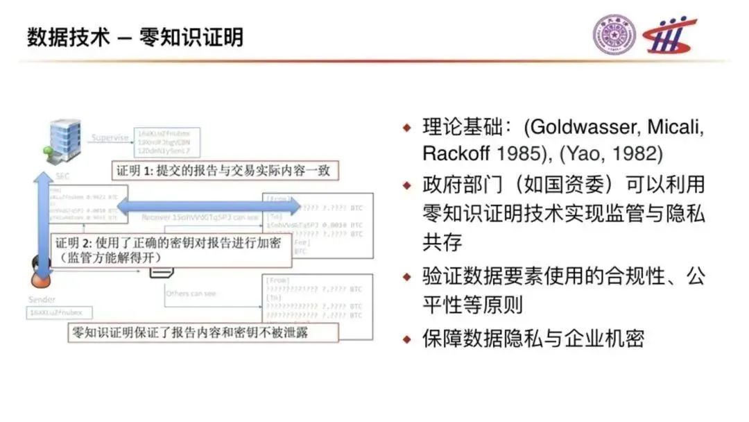 零知識(shí)證明的技術(shù)可以有效實(shí)現(xiàn)這一目標(biāo):政府部門或行業(yè)聯(lián)盟可以共同利用零知識(shí)證明技術(shù)實(shí)現(xiàn)監(jiān)管與隱私共存,驗(yàn)證數(shù)據(jù)要素使用的合規(guī)性、公平性等原則,保障數(shù)據(jù)隱私與企業(yè)機(jī)密。從而可以實(shí)現(xiàn)“黨管數(shù)據(jù),央企先行”的目標(biāo)。